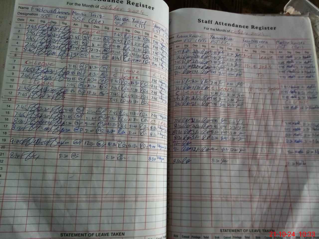 | 35**** | Ra**** Na**** | 1 | 31 | 0 | 0 | 31 | 0 | 0 | 0 | 0 | 0 | Maternity | |