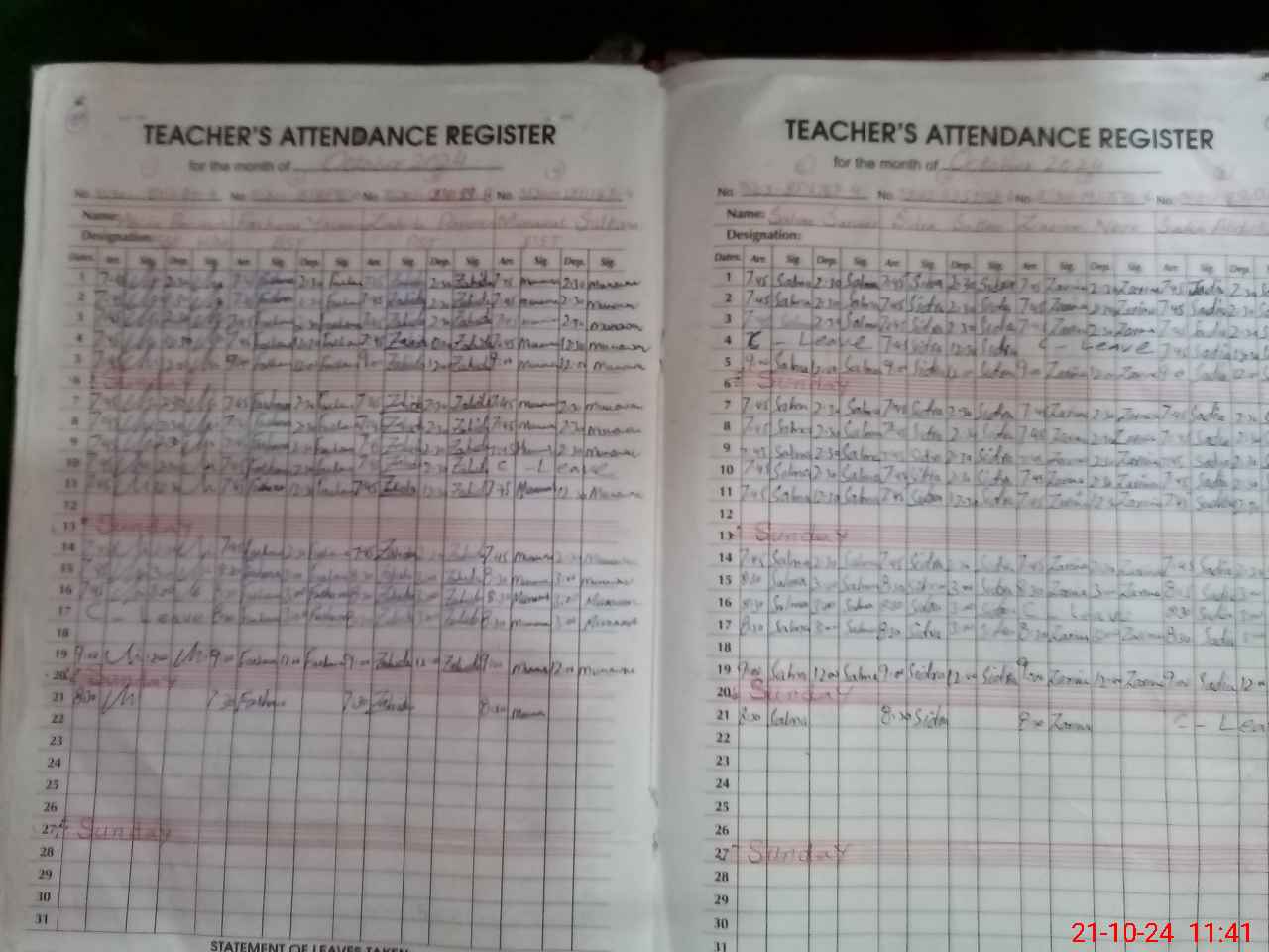 | 36**** | Sa**** Ab**** | PST | Regular | 2 | 0 | 0 | 0 | 0 | 0 | 0 | 0 | 2 | Casual |