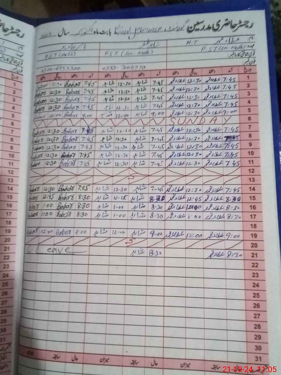 | Name: At**** Mu**** Designation: (School Headmaster's/Headmistress's) PST Phone/Cell Number: 03**** |
