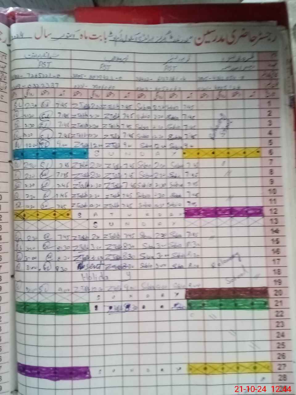 | CNIC | Full Name | Designation | R/C | Absence During Last Calender Month |