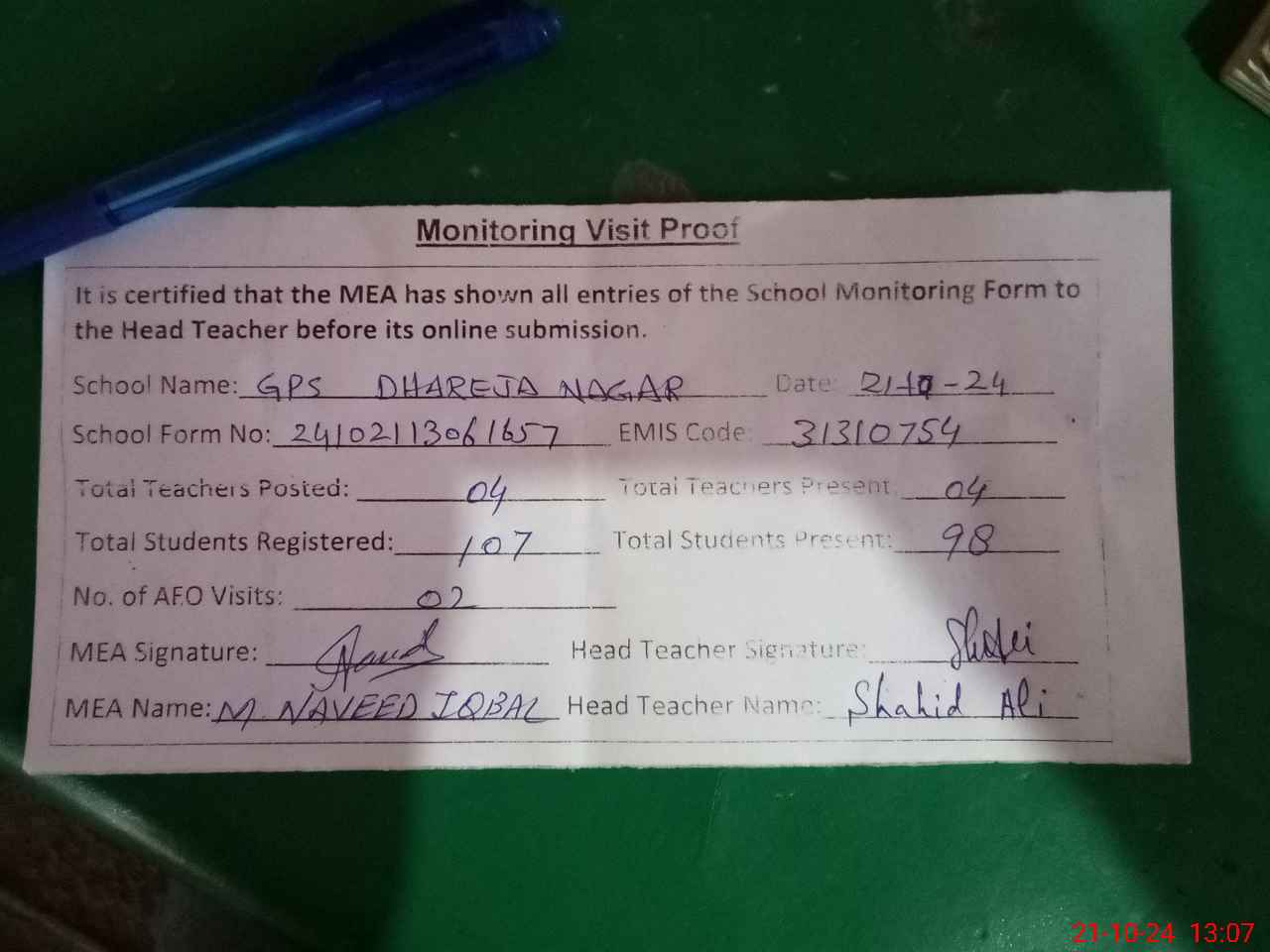 | EMIS Code: 31310754 | Name of School: GPS DHRAIJA NAGAR | |||