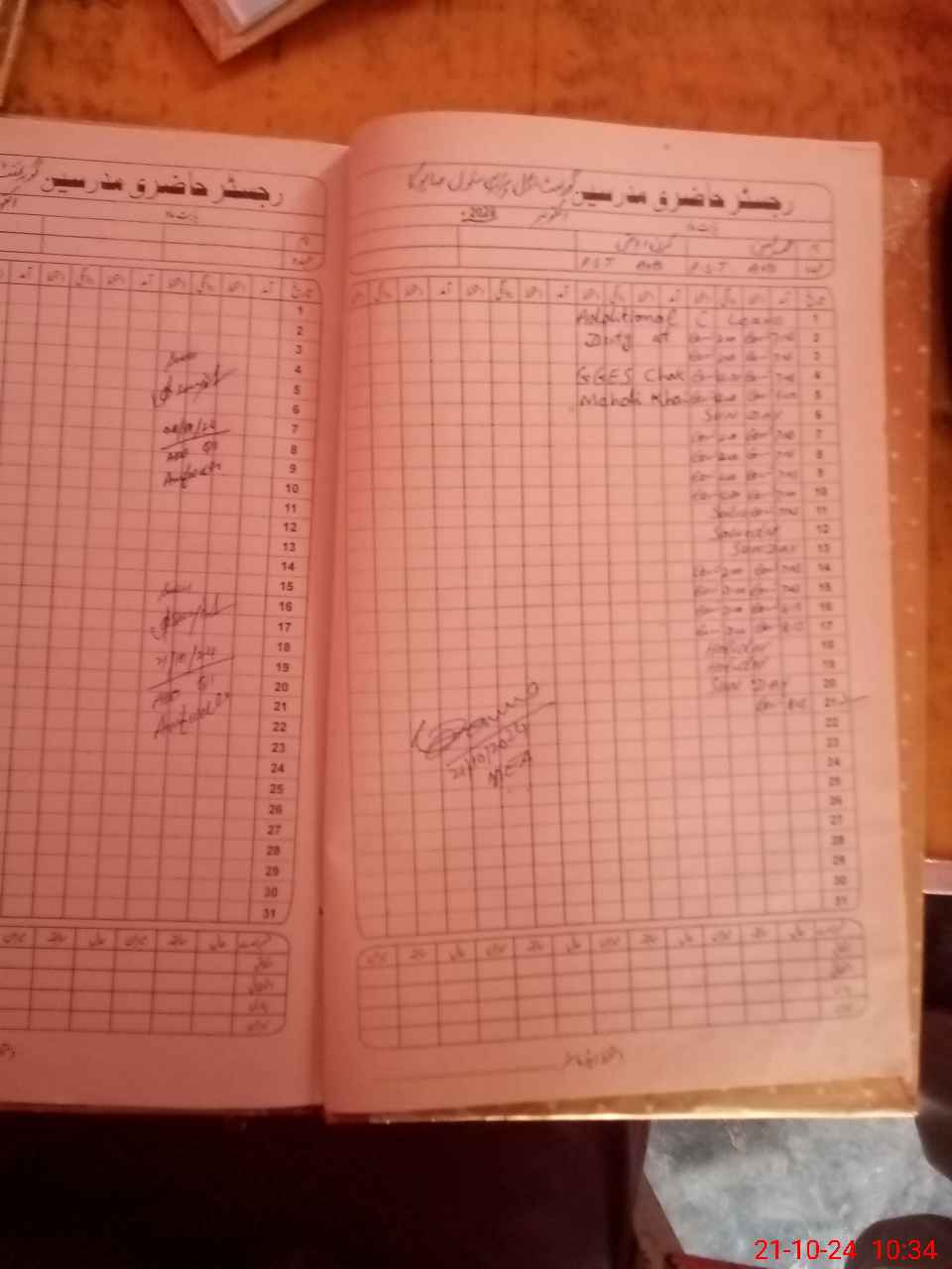 | CNIC | Full Name | Designation | R/C | Absence During Last Calender Month |