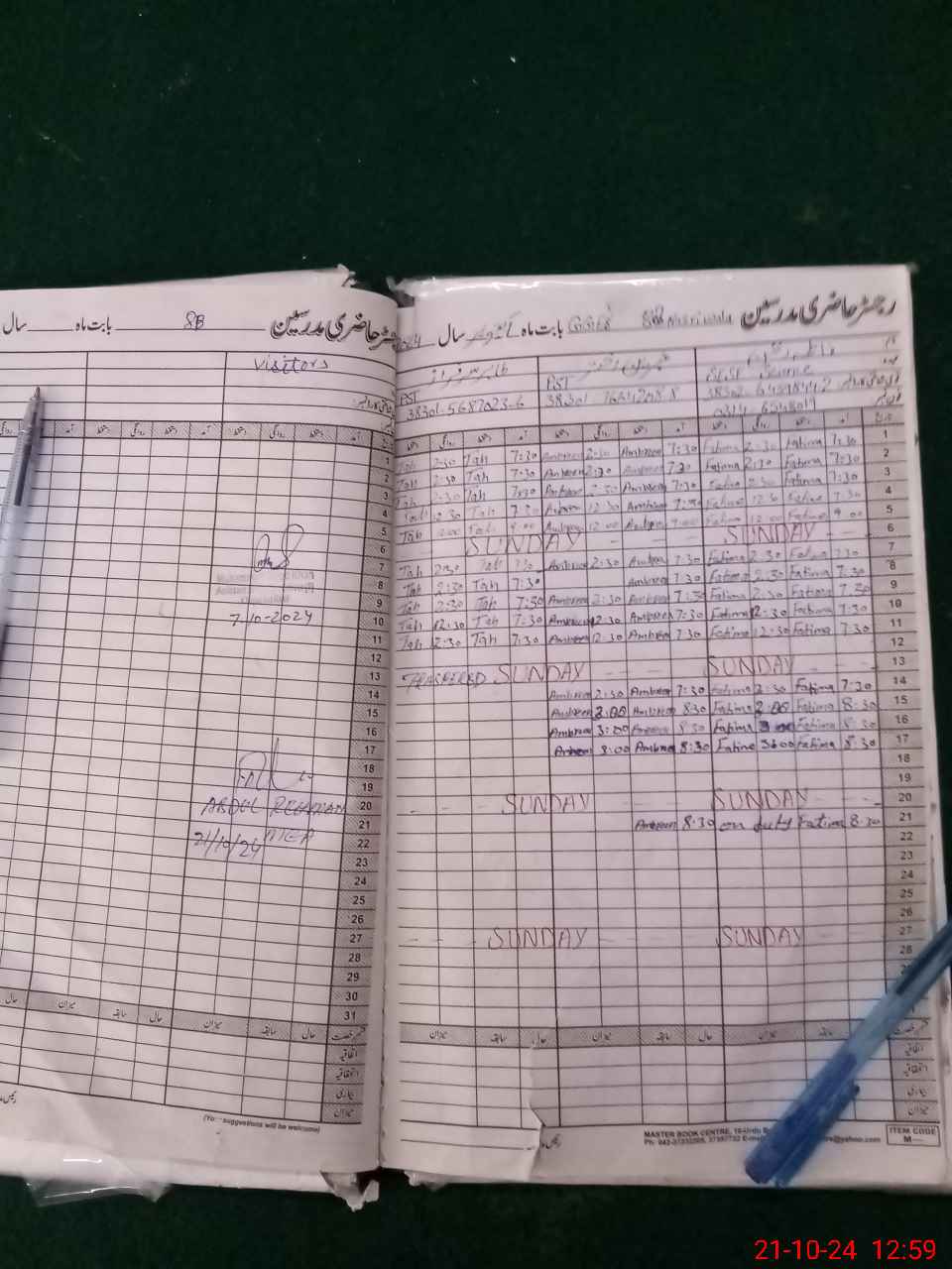 | CNIC | Full Name | Designation | R/C | Absence During Last Calender Month |