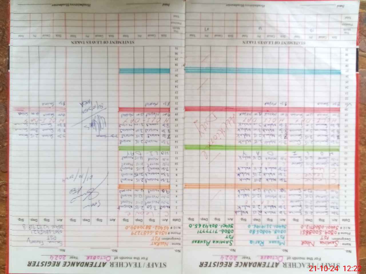 | CNIC | Full Name | Designation | R/C | Absence During Last Calender Month |