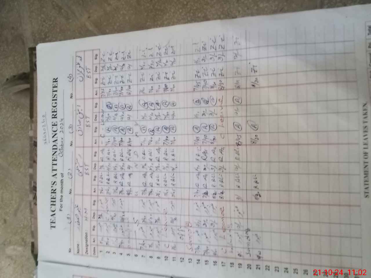 | CNIC | Full Name | Designation | R/C | Absence During Last Calender Month |