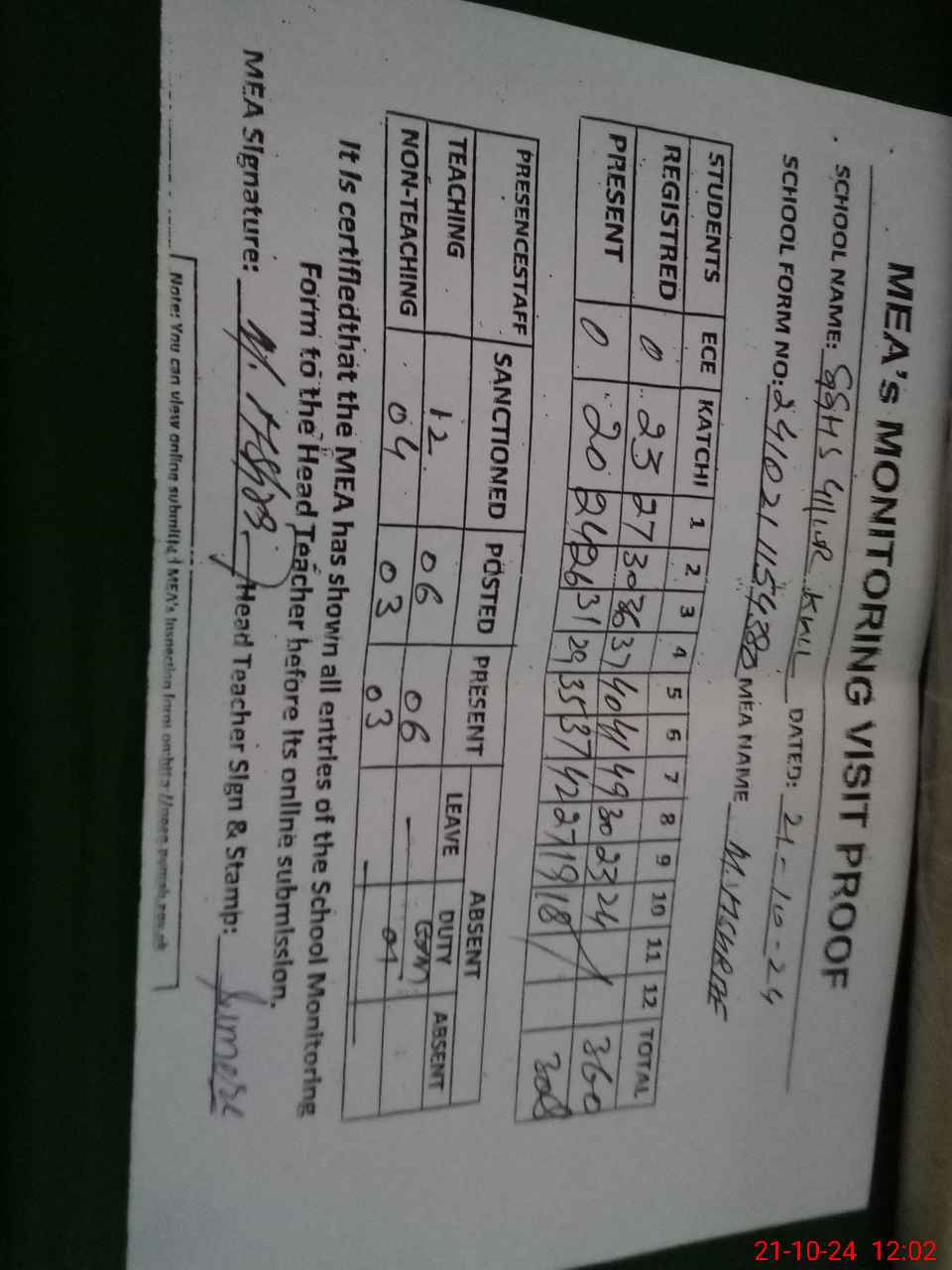 | Certified that this School was Inspected by the Undersigned MEA/DMO Today and the Information Stated Above is as Per Record. | |||||