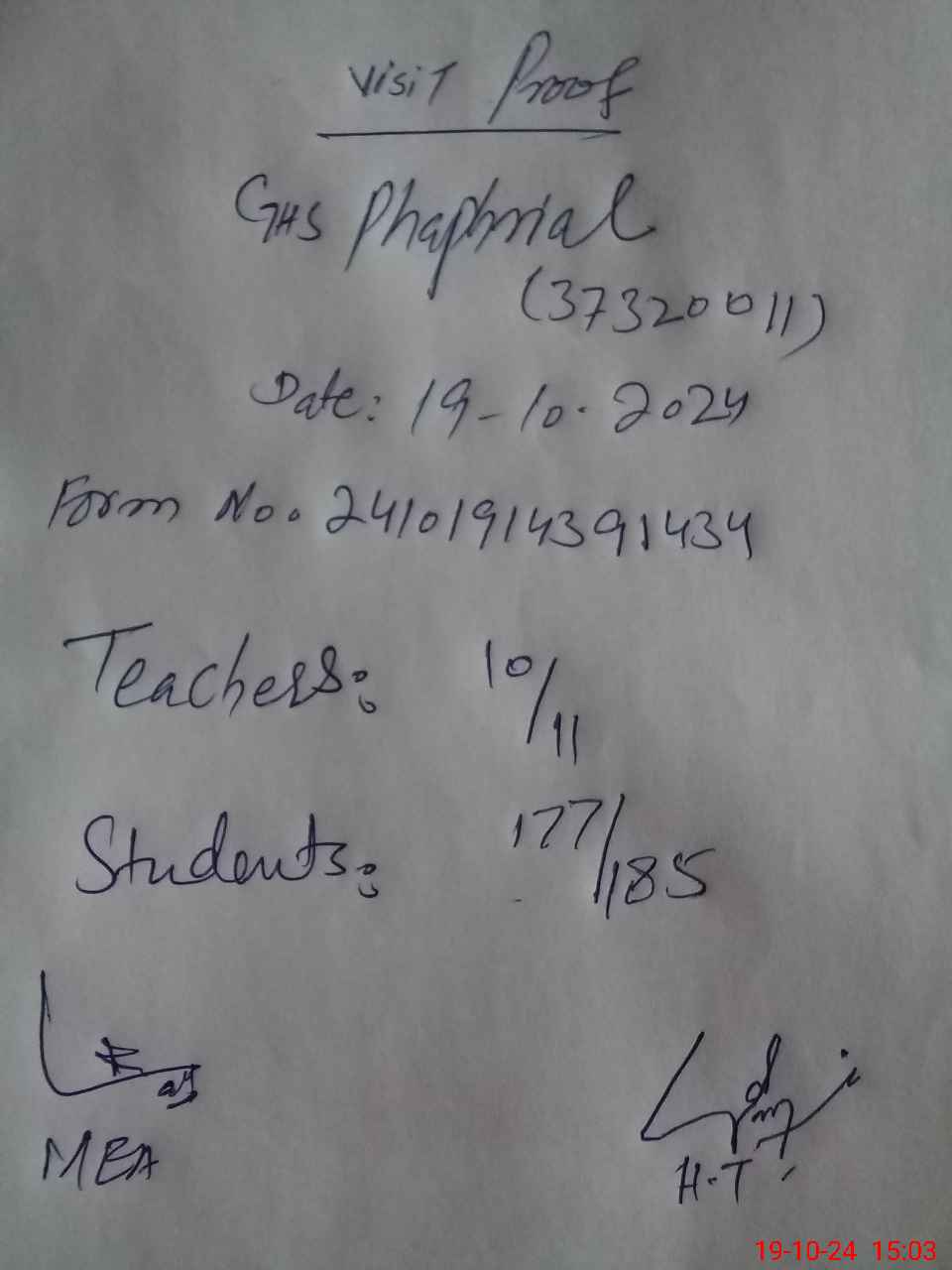 | Attendance Register | Head Teacher | MEA with School | Visit Proof |