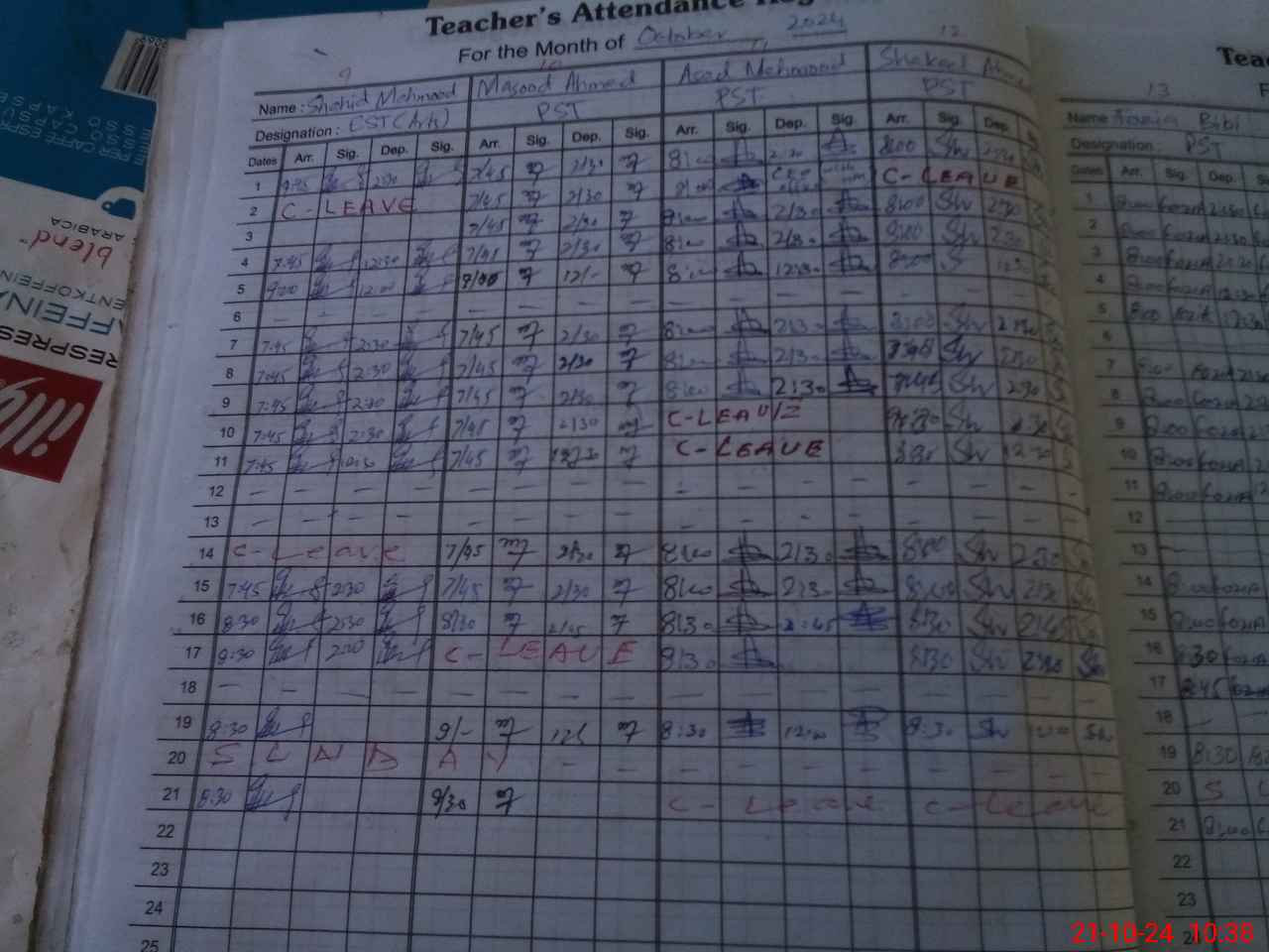 | CNIC | Full Name | Designation | R/C | Absence During Last Calender Month |
