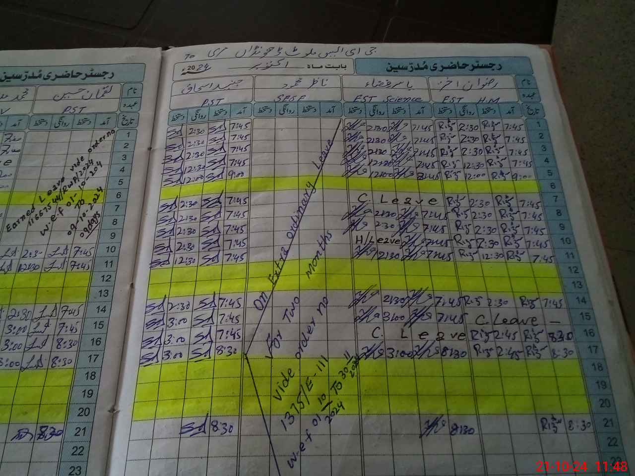 | CNIC | Full Name | Designation | R/C | Absence During Last Calender Month |