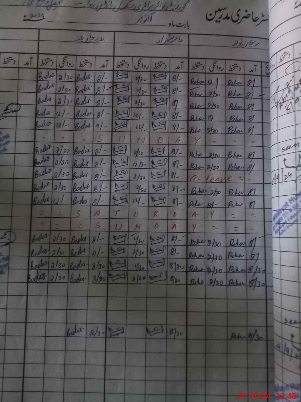 | CNIC | Full Name | Designation | R/C | Absence During Last Calender Month |