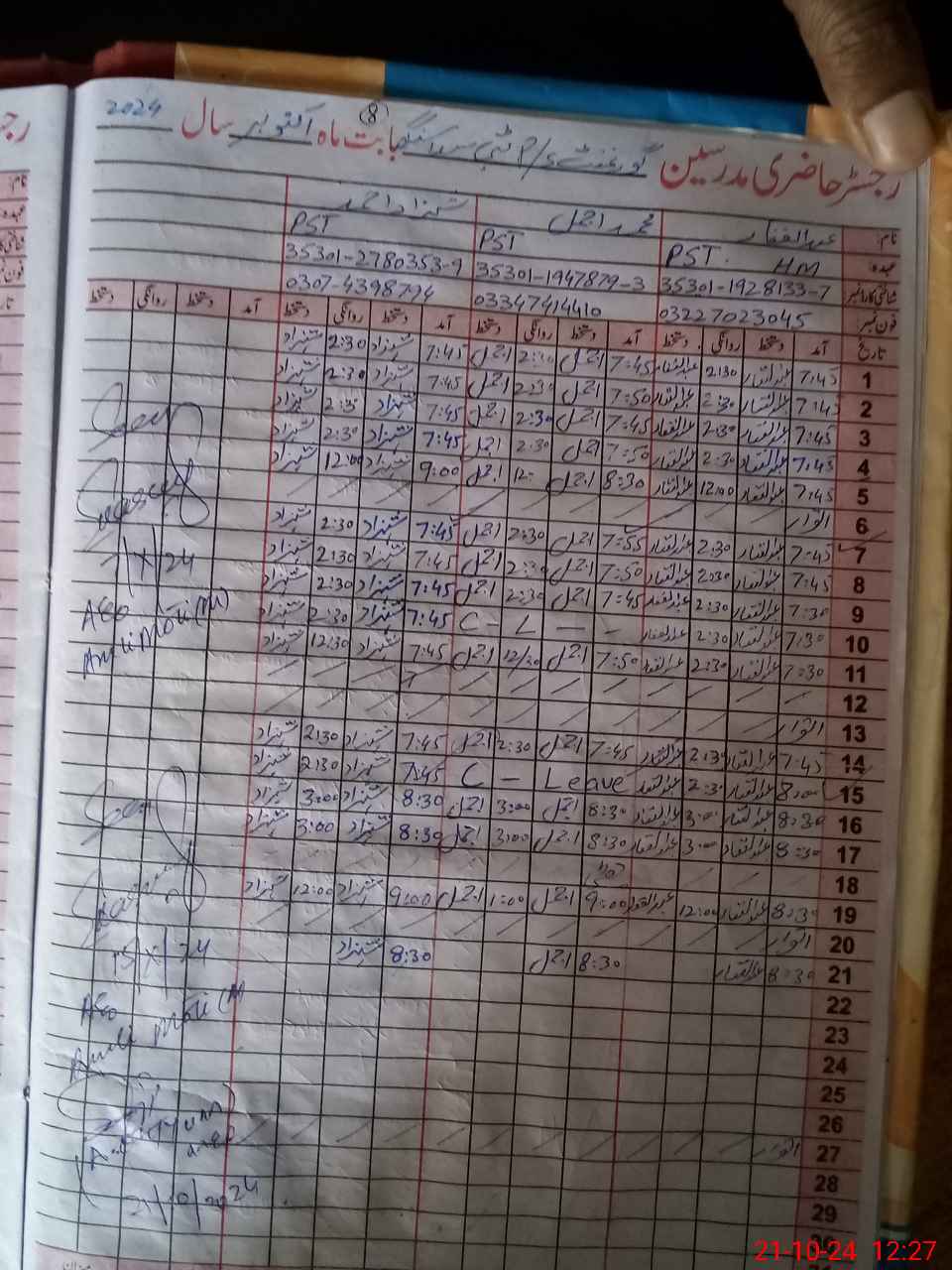 | CNIC | Full Name | Designation | R/C | Absence During Last Calender Month |