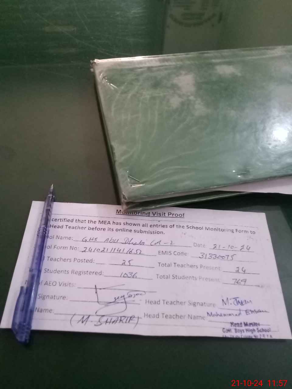 | EMIS Code: 31330075 | Name of School: GHS ABU DAHBI COLONY NO. 2 | |||