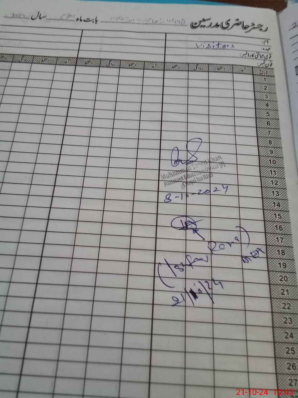 | Sr.No. | Visit Date | Designation | ||