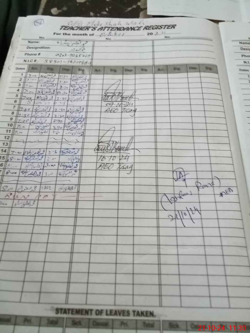 | Name: Ni**** Ah**** Designation: (School Headmaster's/Headmistress's) SST English Phone/Cell Number: 03**** |