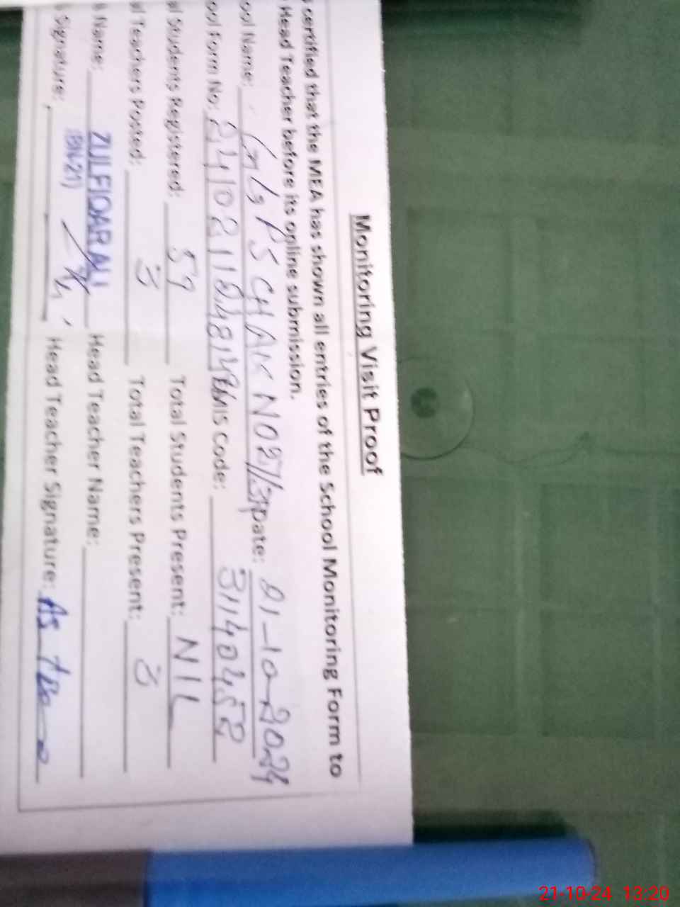 | Name: AS**** Ba**** Designation: (School Headmaster's/Headmistress's) PTC/JV Phone/Cell Number: 03**** |