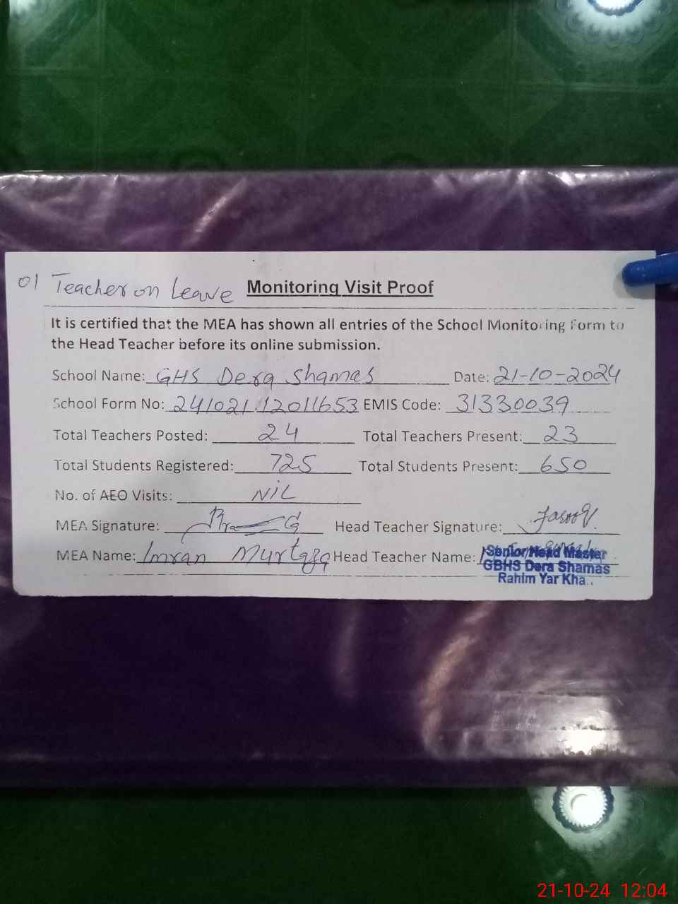 | EMIS Code: 31330039 | Name of School: GHS DERA SHAMAS | |||