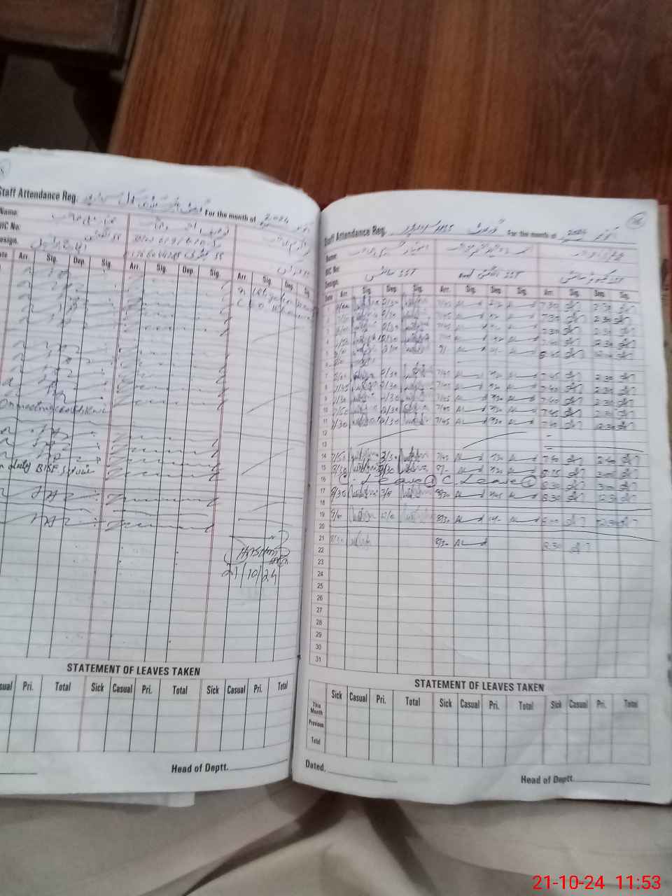 | CNIC | Full Name | Designation | R/C | Absence During Last Calender Month |