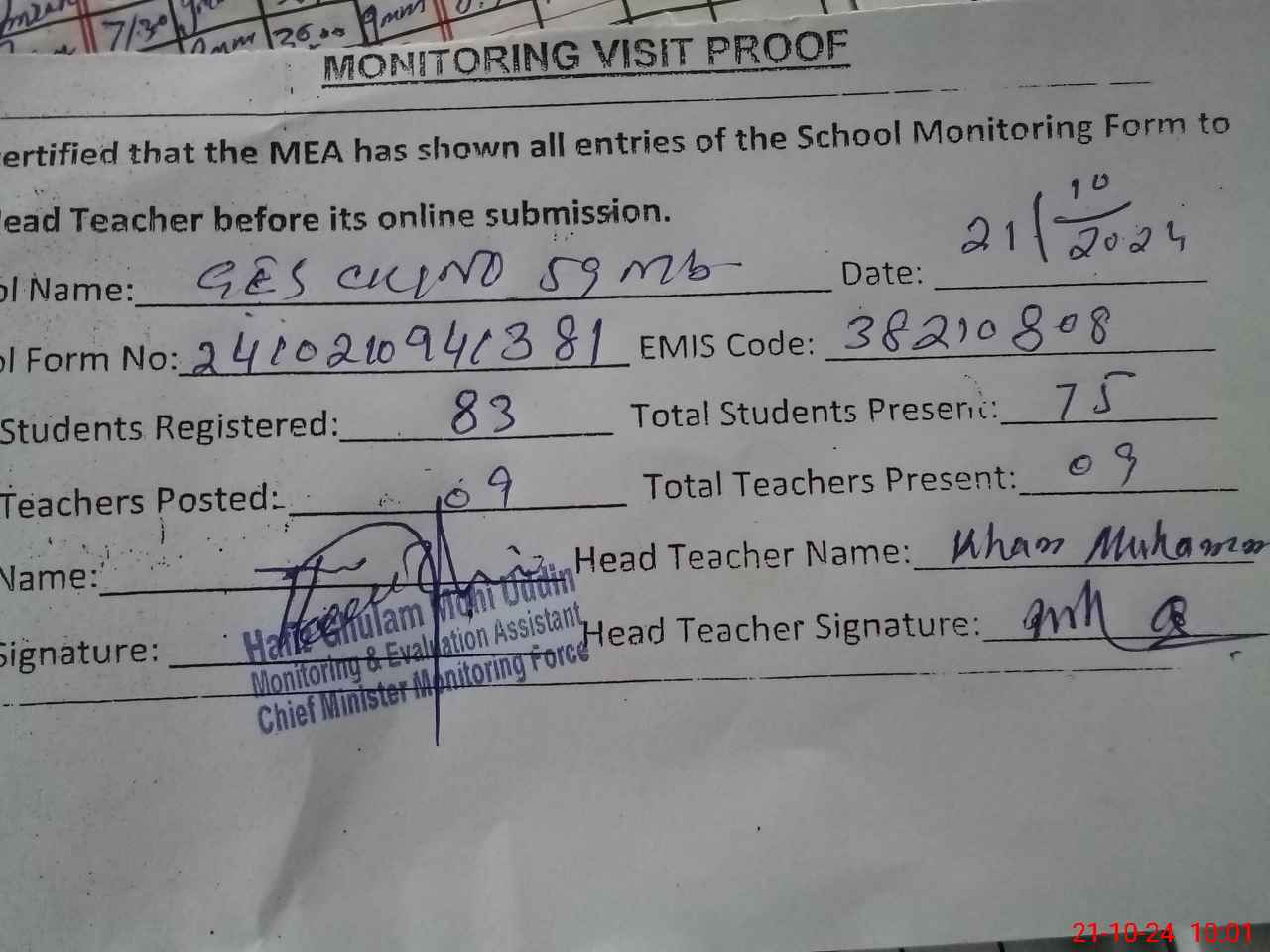 | EMIS Code: 38210808 | Name of School: GES CHAK NO. 59 MB | |||