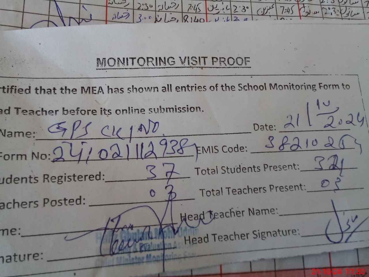 | Certified that this School was Inspected by the Undersigned MEA/DMO Today and the Information Stated Above is as Per Record. | |||||