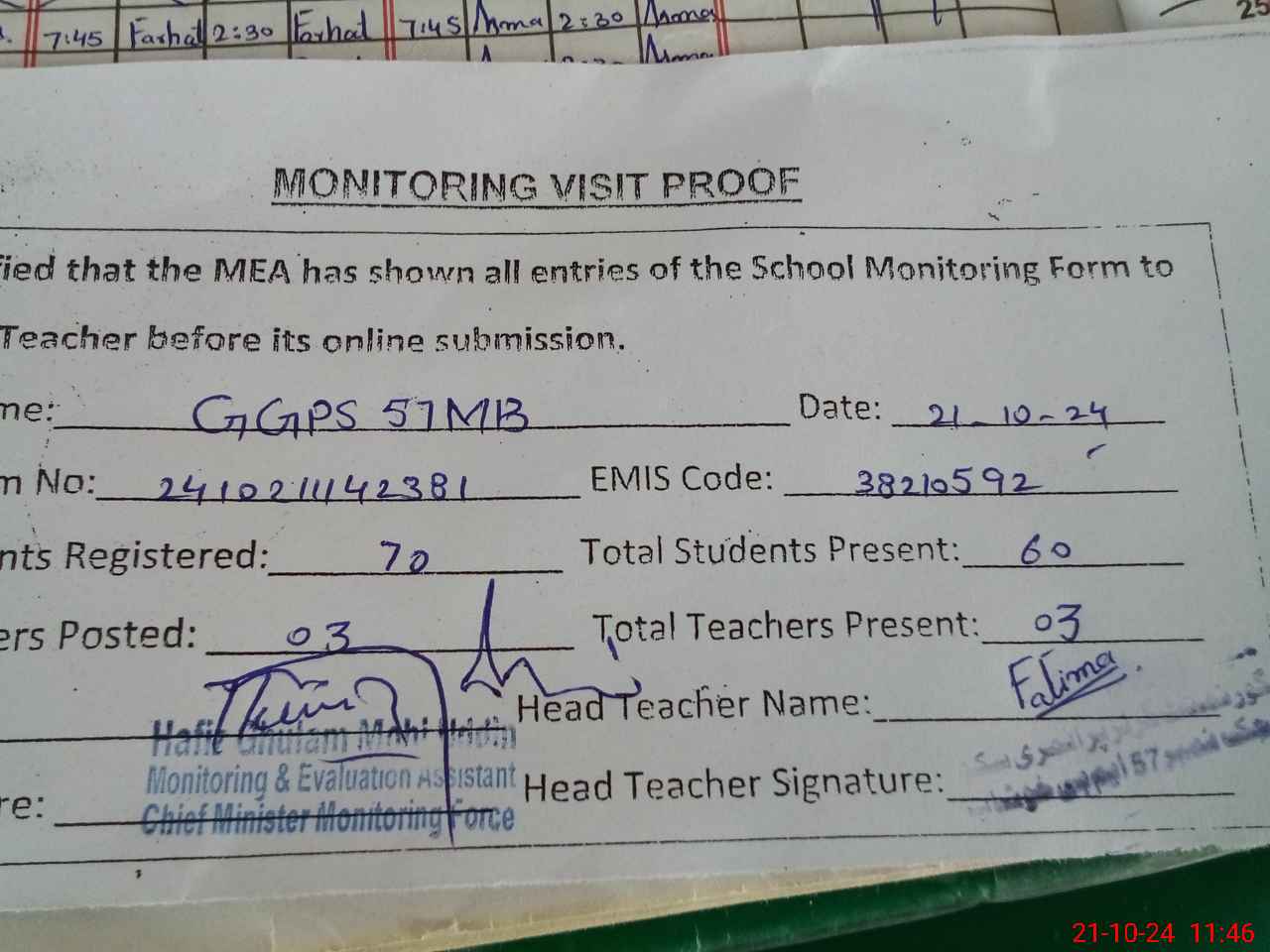 | EMIS Code: 38210592 | Name of School: GGPS CHAK NO. 57 MB | |||