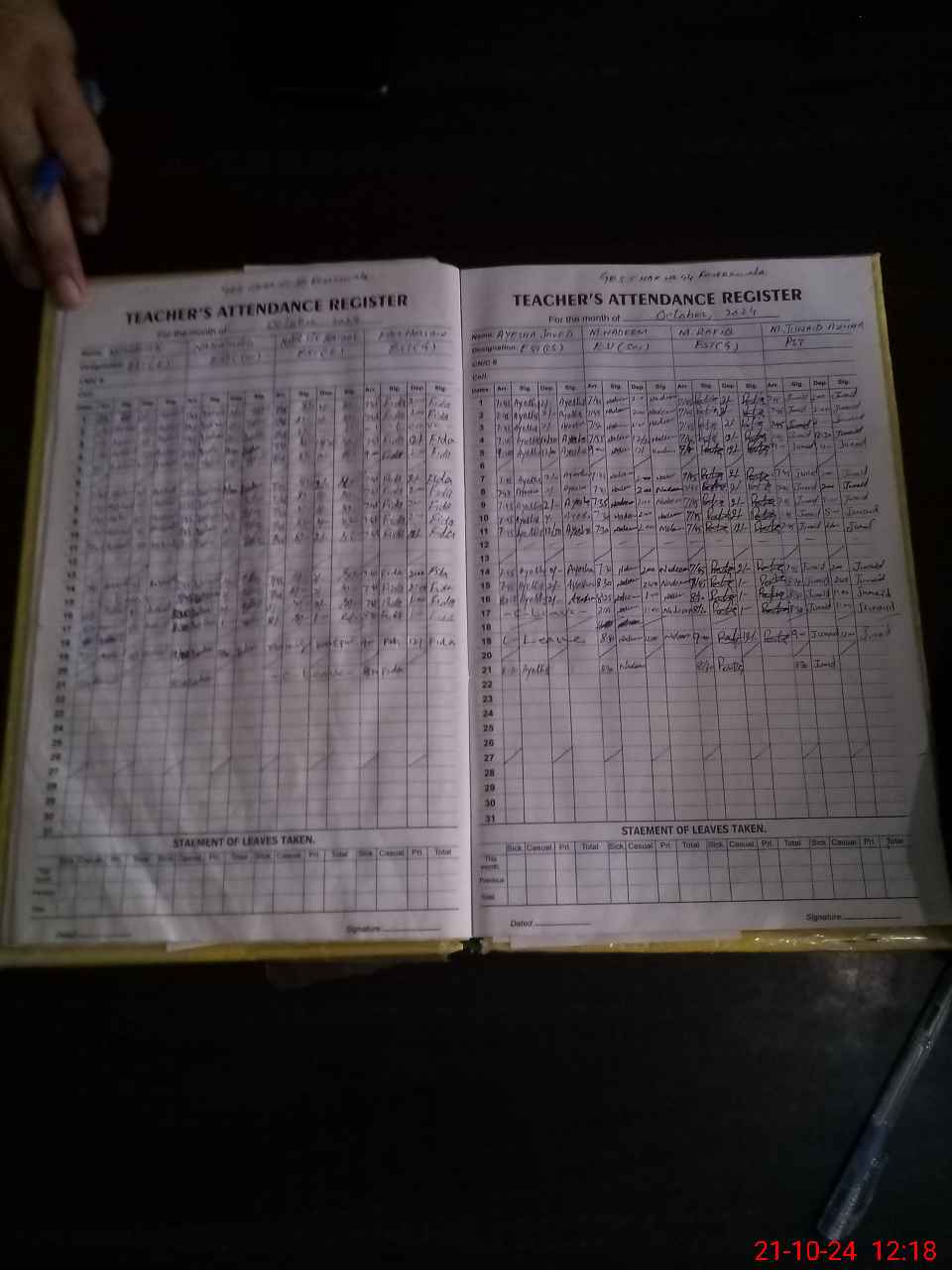 | Leave | Duty | Absent | Maternity | Medical | Ex- Pak |
