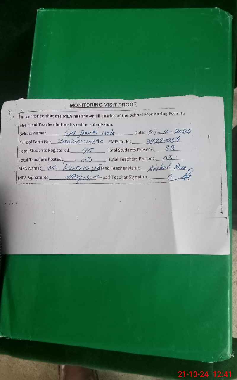 | Attendance Register | Head Teacher | MEA with School | Visit Proof |