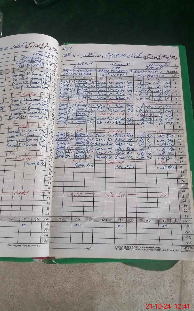 | CNIC | Full Name | Designation | R/C | Absence During Last Calender Month |