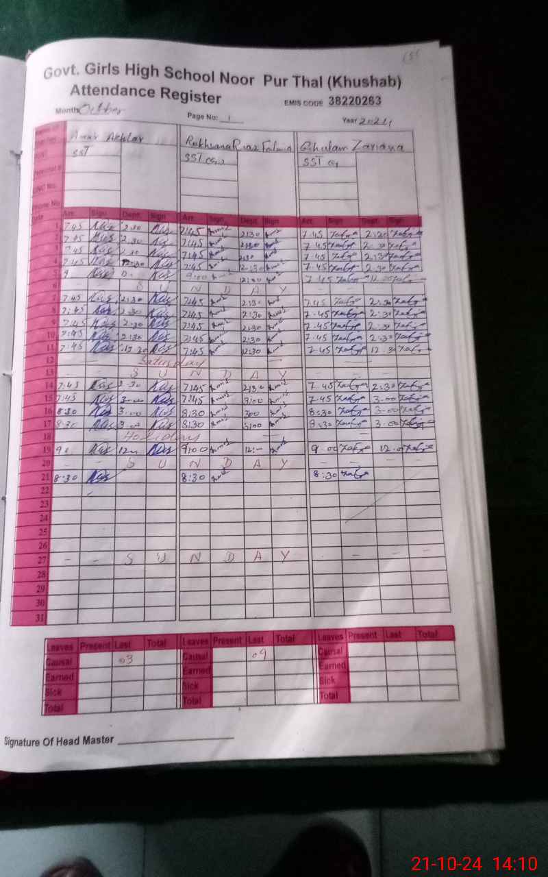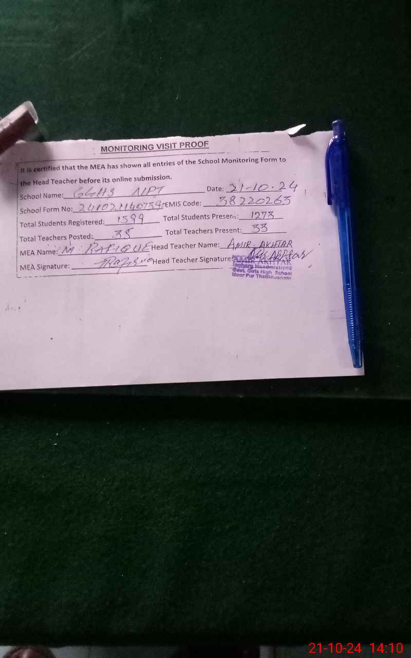 | EMIS Code: 38220263 | Name of School: GGHS NOOR PUR THAL | |||