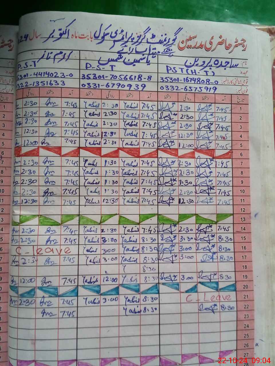 | Name: Sa**** Pe**** Designation: (School Headmaster's/Headmistress's) PST Phone/Cell Number: 03**** |