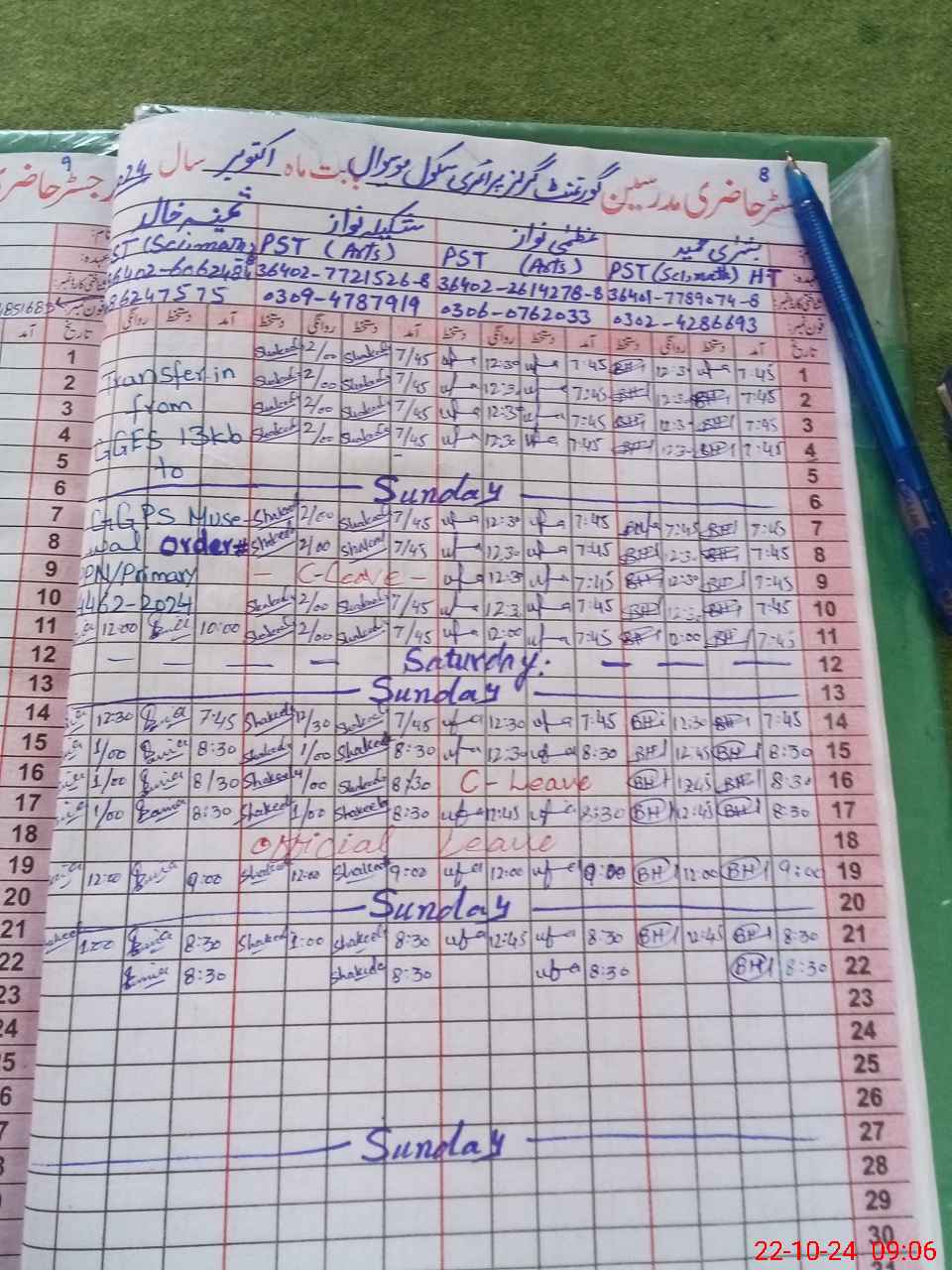 | Name: Uz**** Na**** Designation: (School Headmaster's/Headmistress's) PST Phone/Cell Number: 03**** |