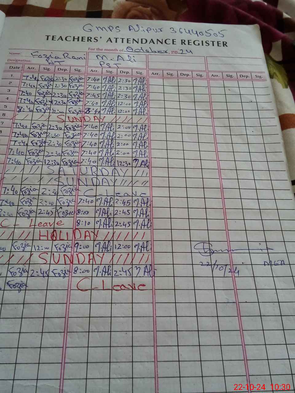 | Name: FO**** RA**** Designation: (School Headmaster's/Headmistress's) PST Phone/Cell Number: 03**** |
