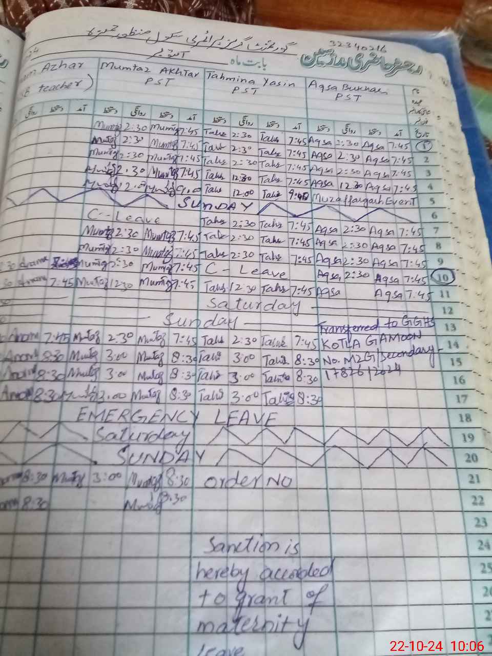 | 32**** | Ta**** Ya**** | PST | Regular | 0 | 0 | 0 | 0 | 0 | 0 | 0 | 0 | 0 | Maternity |