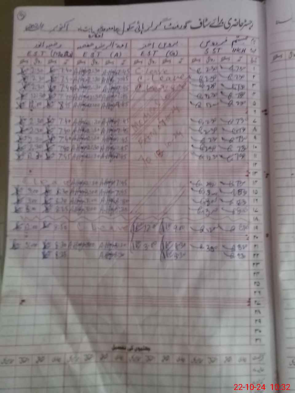 | CNIC | Full Name | Designation | R/C | Absence During Last Calender Month |