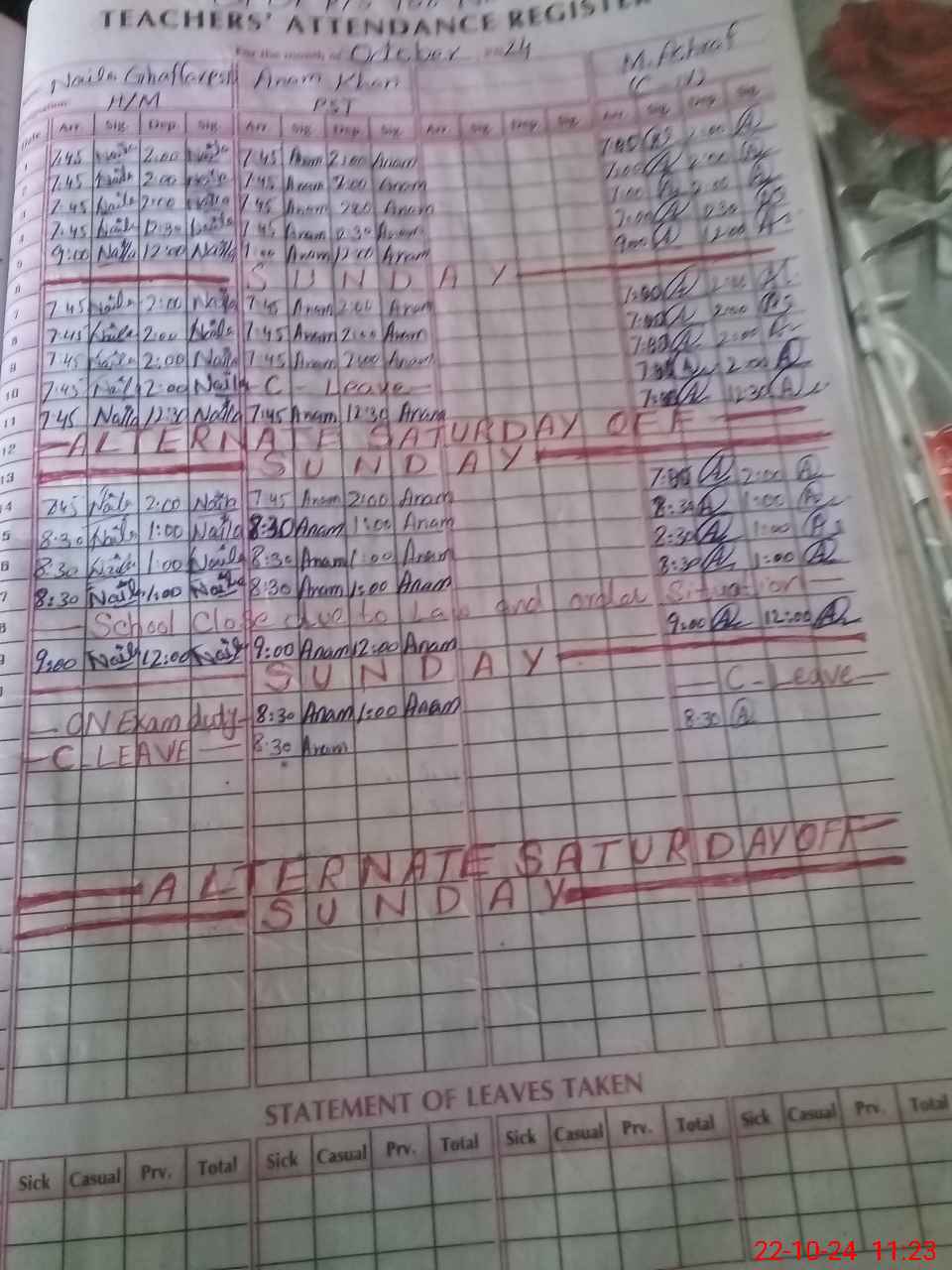 | 38**** | Na**** Gh**** | PST | Regular | 1 | 16 | 0 | 0 | 0 | 0 | 0 | 0 | 1 | Casual |