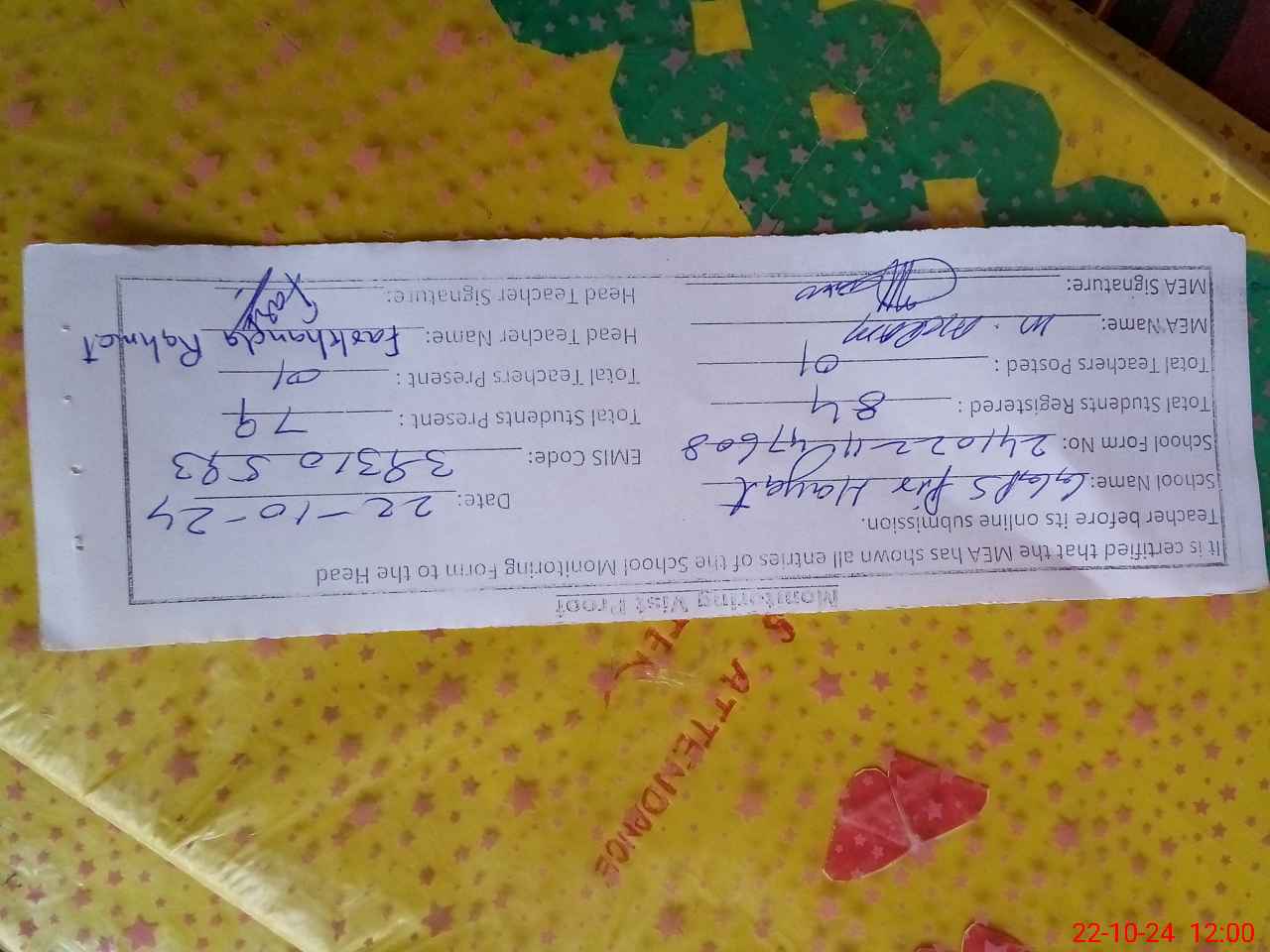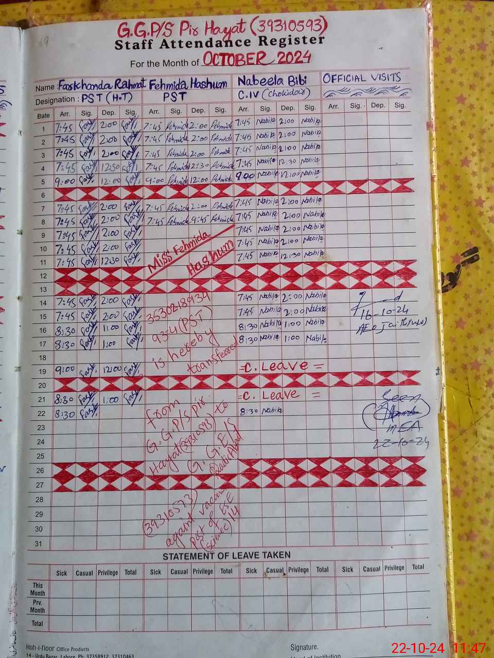| Name: Fa**** Re**** Designation: (School Headmaster's/Headmistress's) PST Phone/Cell Number: 03**** |