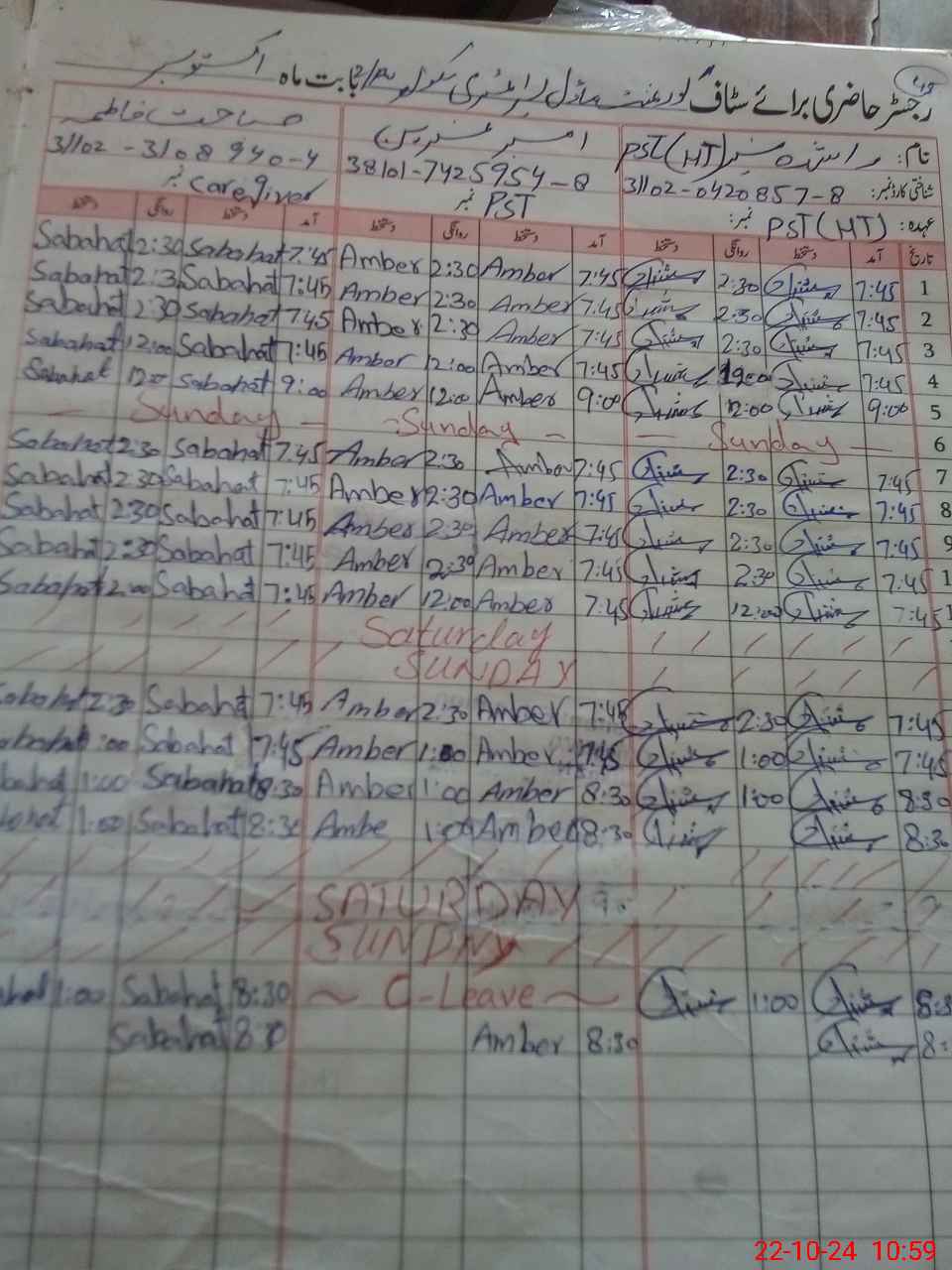 | CNIC | Full Name | Designation | R/C | Absence During Last Calender Month |