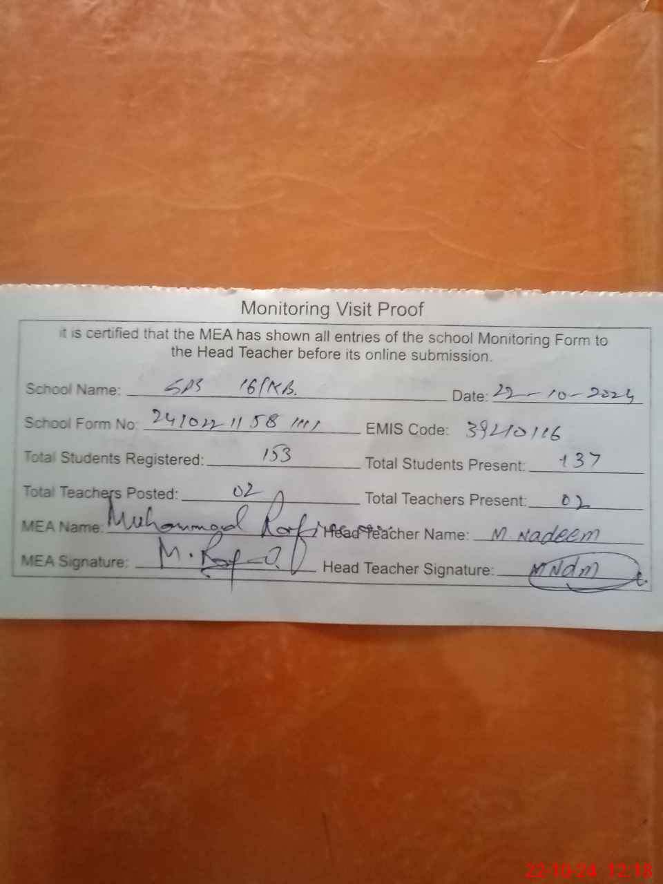 | EMIS Code: 39210116 | Name of School: GPS 16 KB | |||