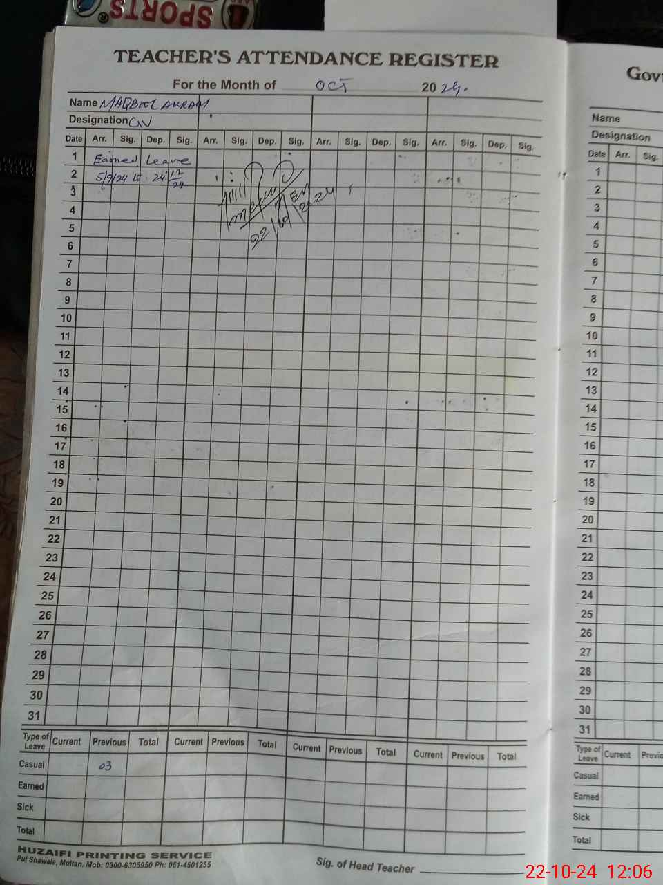 | Name: MSh**** An**** Designation: (School Headmaster's/Headmistress's) HM Phone/Cell Number: 03**** |