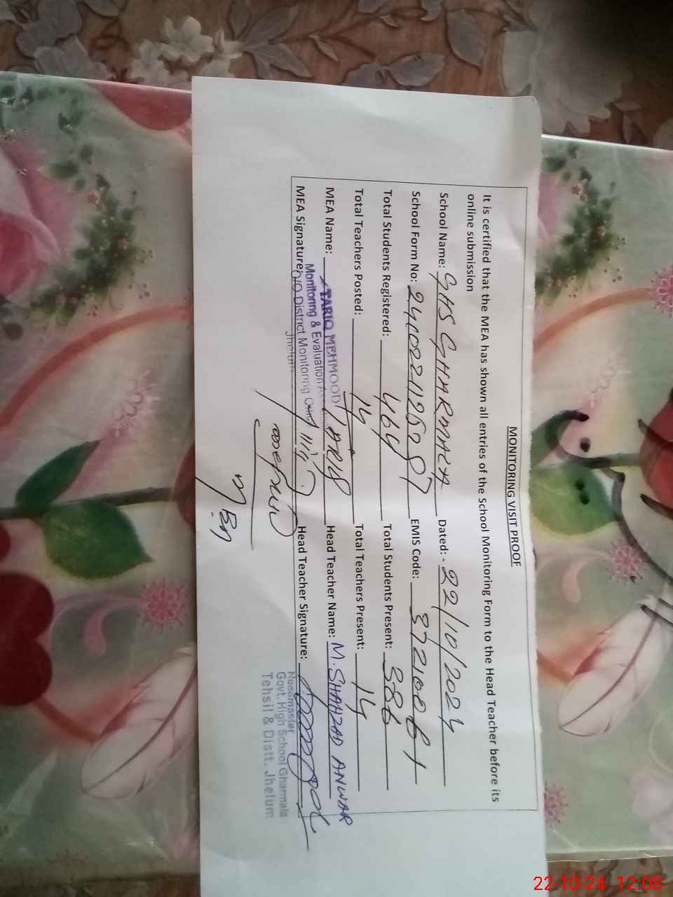 | EMIS Code: 37210061 | Name of School: GHS GHARMALA | |||