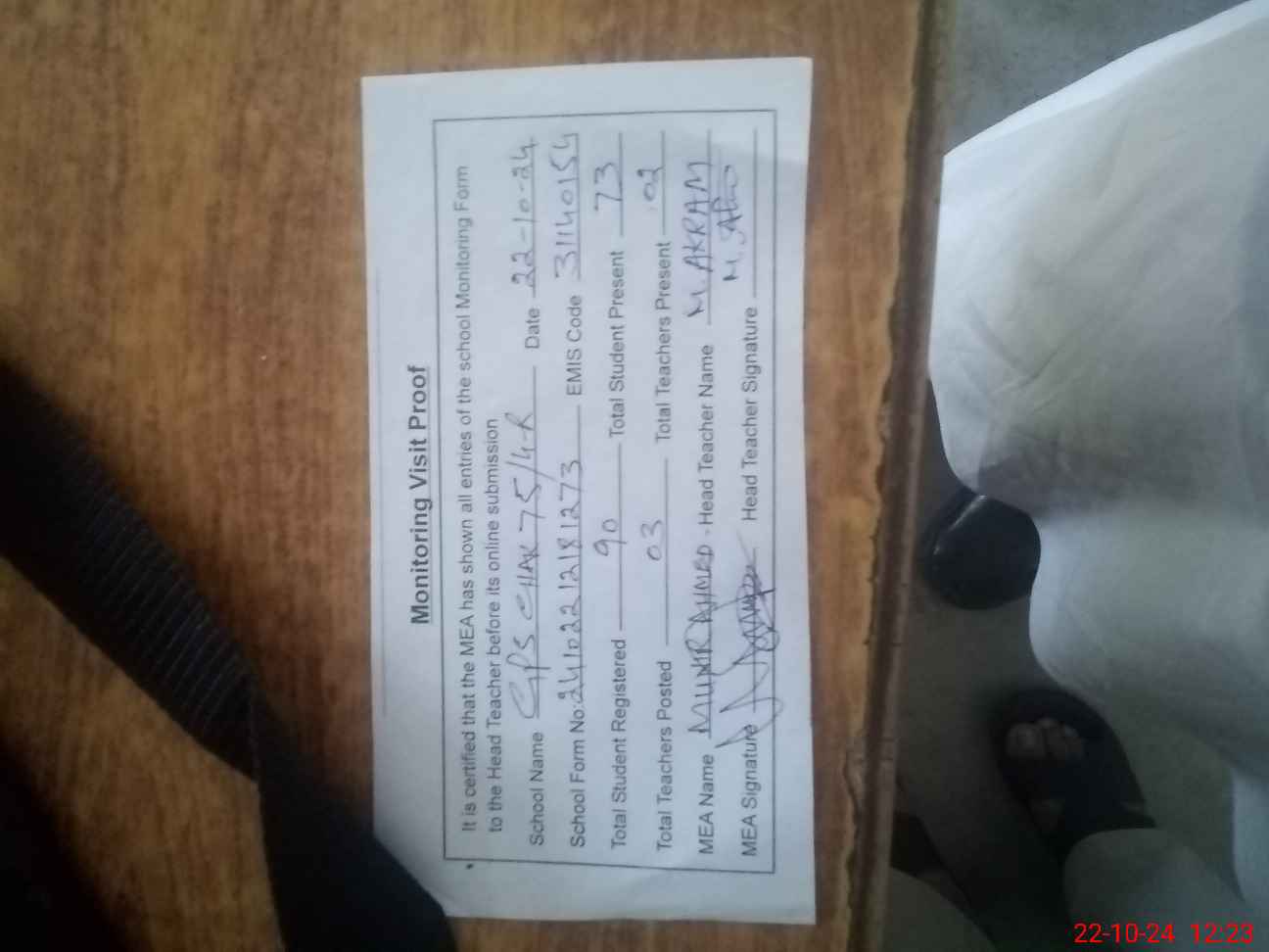 | EMIS Code: 31140154 | Name of School: GPS CHAK NO. 75/4-R | |||