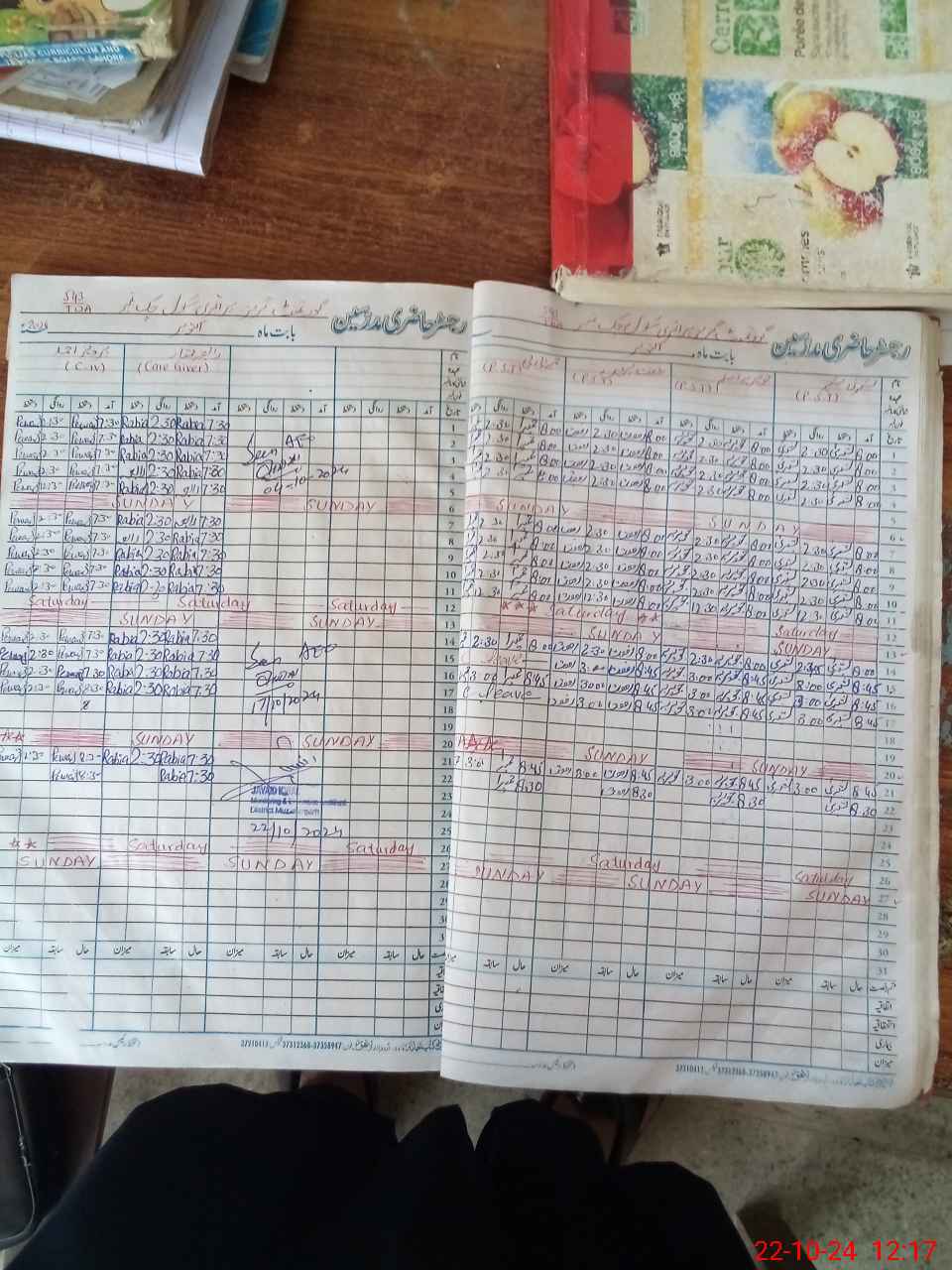 | CNIC | Full Name | Designation | R/C | Absence During Last Calender Month |