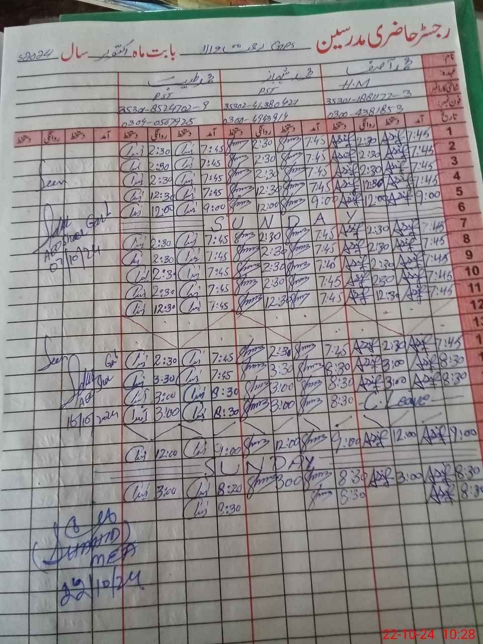 | Name: Mu**** As**** Designation: (School Headmaster's/Headmistress's) PST Phone/Cell Number: 03**** |
