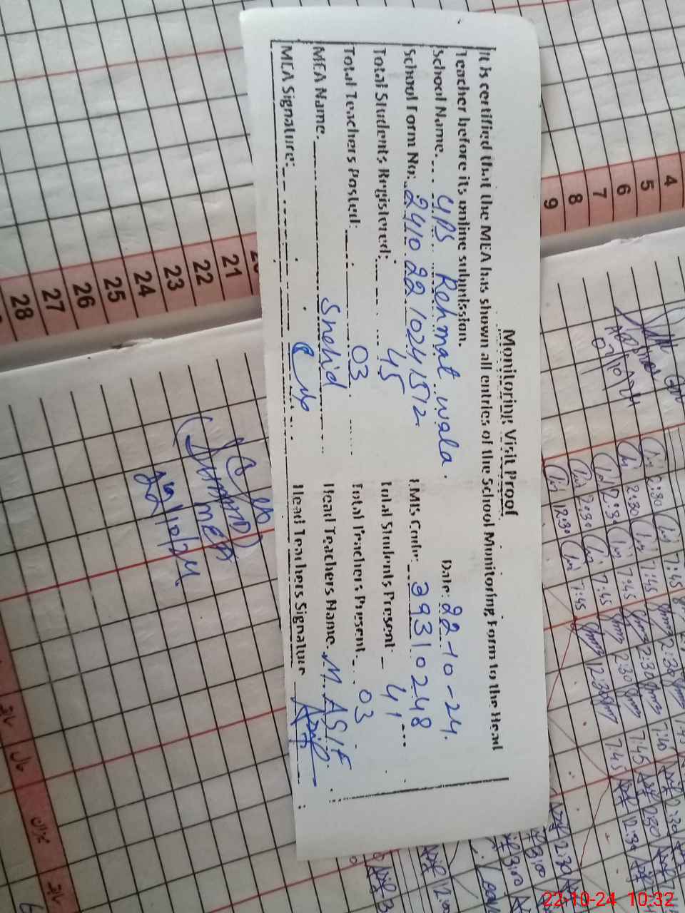 | EMIS Code: 39310248 | Name of School: GPS REHMAT WALA | |||