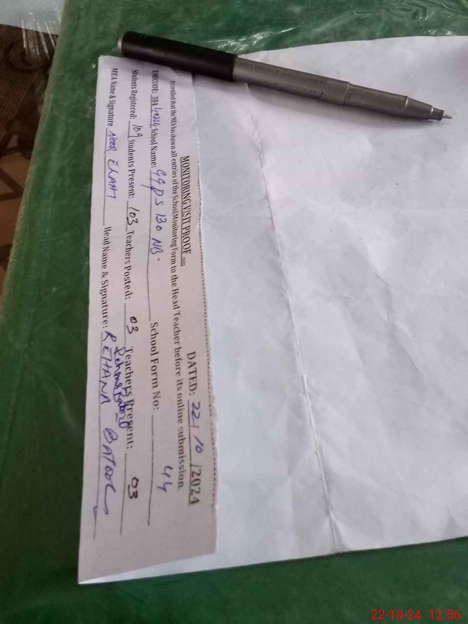 | Attendance Register | Head Teacher | MEA with School | Visit Proof |