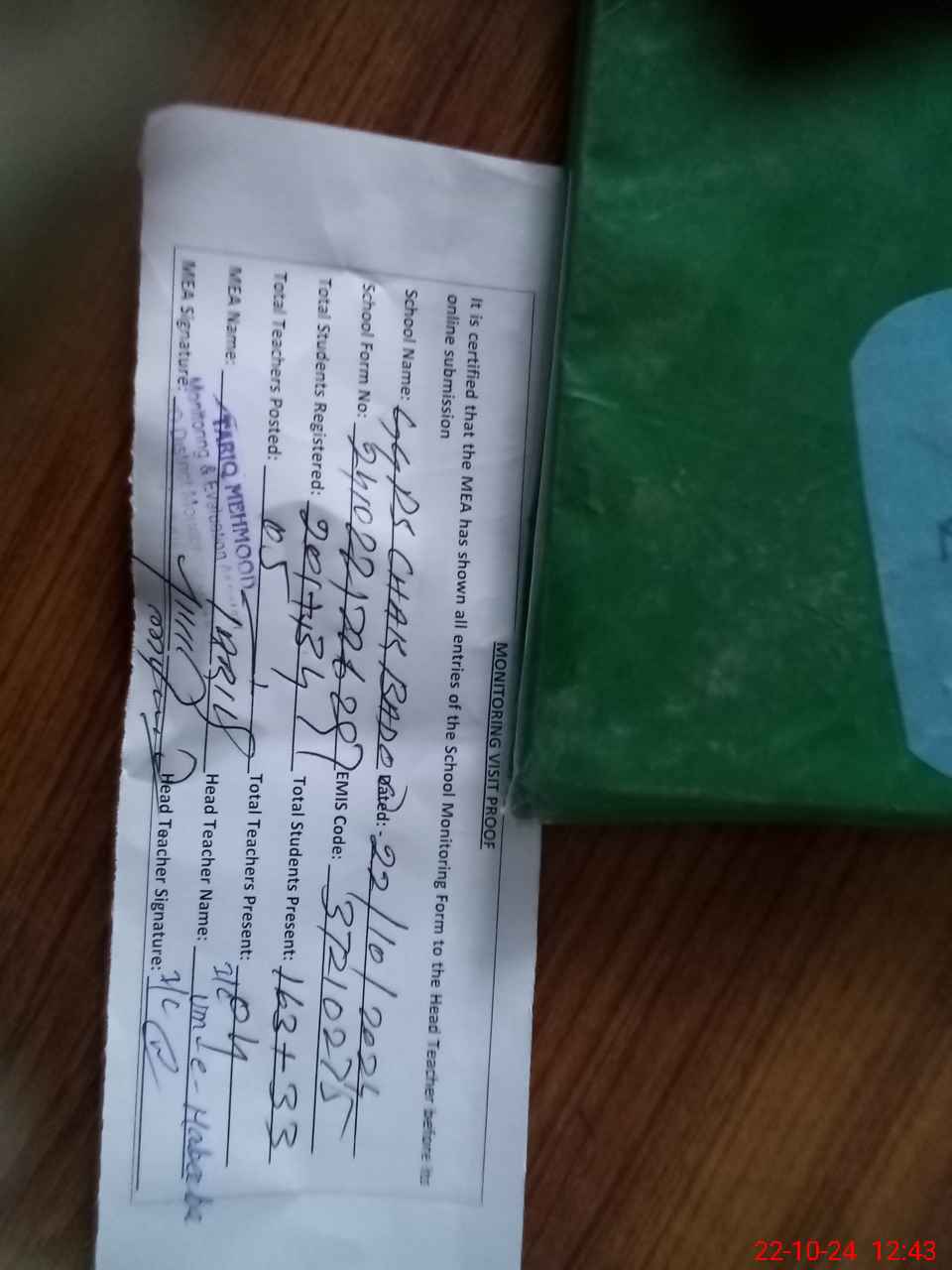 | EMIS Code: 37210275 | Name of School: GGPS CHAK BUDDO | |||