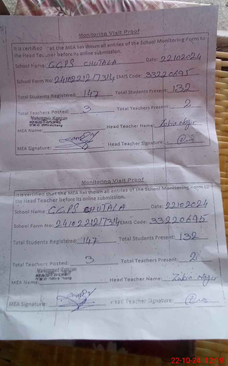 | EMIS Code: 33220695 | Name of School: GGPS CHUTALA | |||