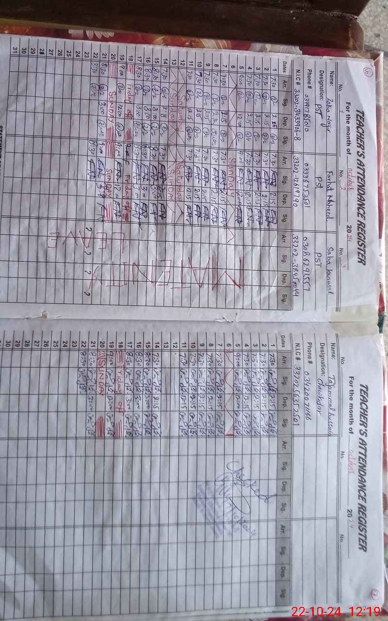 | Name: ZA**** NA**** Designation: (School Headmaster's/Headmistress's) PST Phone/Cell Number: 03**** |