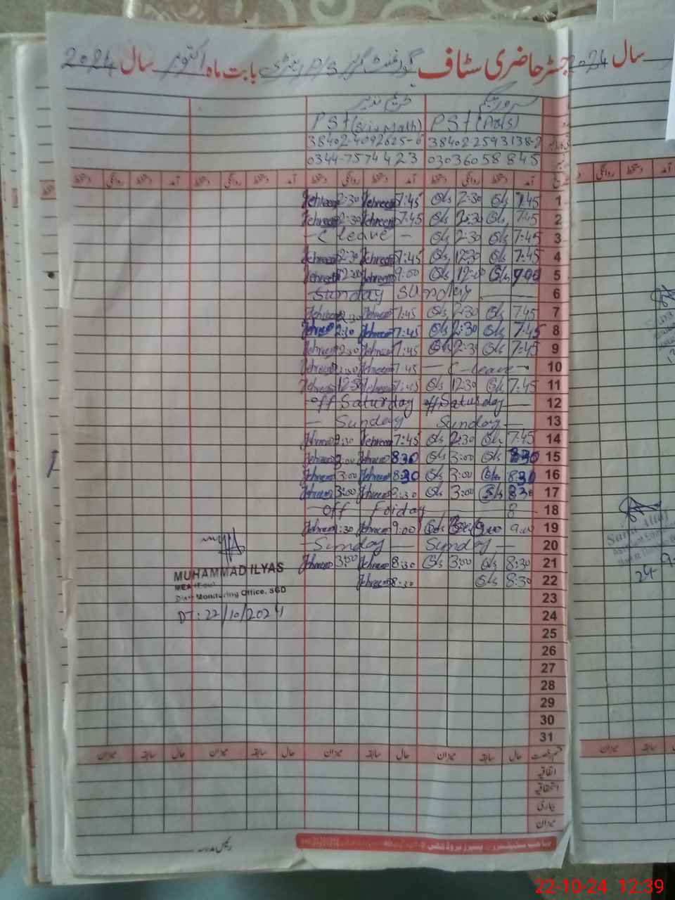 | CNIC | Full Name | Designation | R/C | Absence During Last Calender Month |