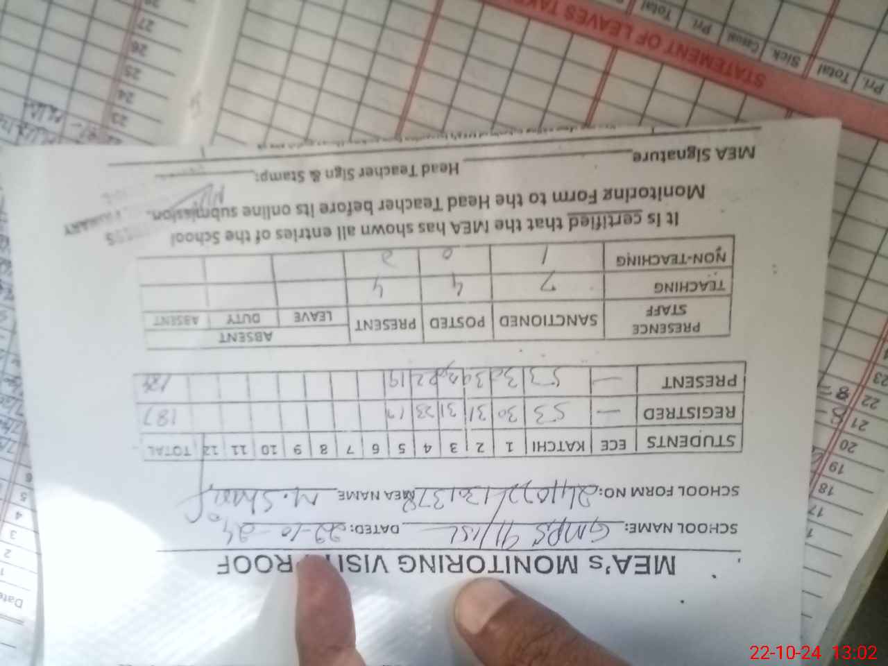 | Attendance Register | Head Teacher | MEA with School | Visit Proof |