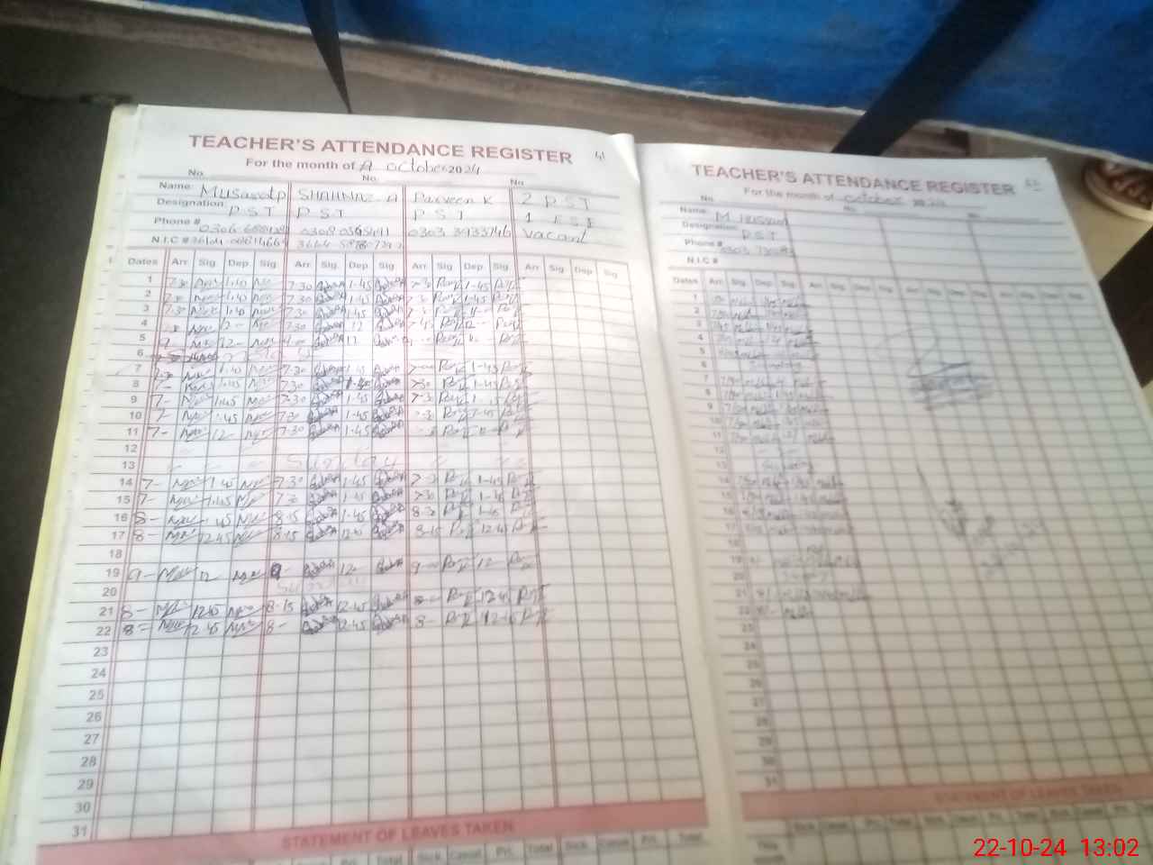 | Name: MU**** PA**** Designation: (School Headmaster's/Headmistress's) PST Phone/Cell Number: 03**** |